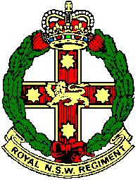 The principal elements are the Crown indicating a Royal Regiment, the Cross of St George bearing the Lion of England and the stars of the Southern Cross, the whole being enclosed within a wreath of Waratahs, the floral emblem of NSW.