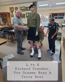 Pte Matt Moffatt winner of the Association Leadership Scholarship in 2017 gave a very good presentation on his military service and the life and deeds of the units WW1 VC winner Bernard Gordon.